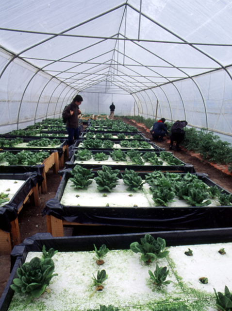 Los invernaderos también cumplen una función en la propagación de plantas, donde se emplean camas calientes para propagar diferentes especies, a partir de semillas, estacas o esquejes. Asimismo, se utilizan para el taller de cultivo bajo plástico, en donde los estudiantes trabajan en la agricultura hidropónica. Esta modalidad involucra el cultivo en agua, ya sea con aireación cerrada o abierta, incluyendo sistemas como el de raíz flotante. Generalmente se utilizan hortalizas como lechuga en diferentes variedades, espinacas, acelgas, albahaca.